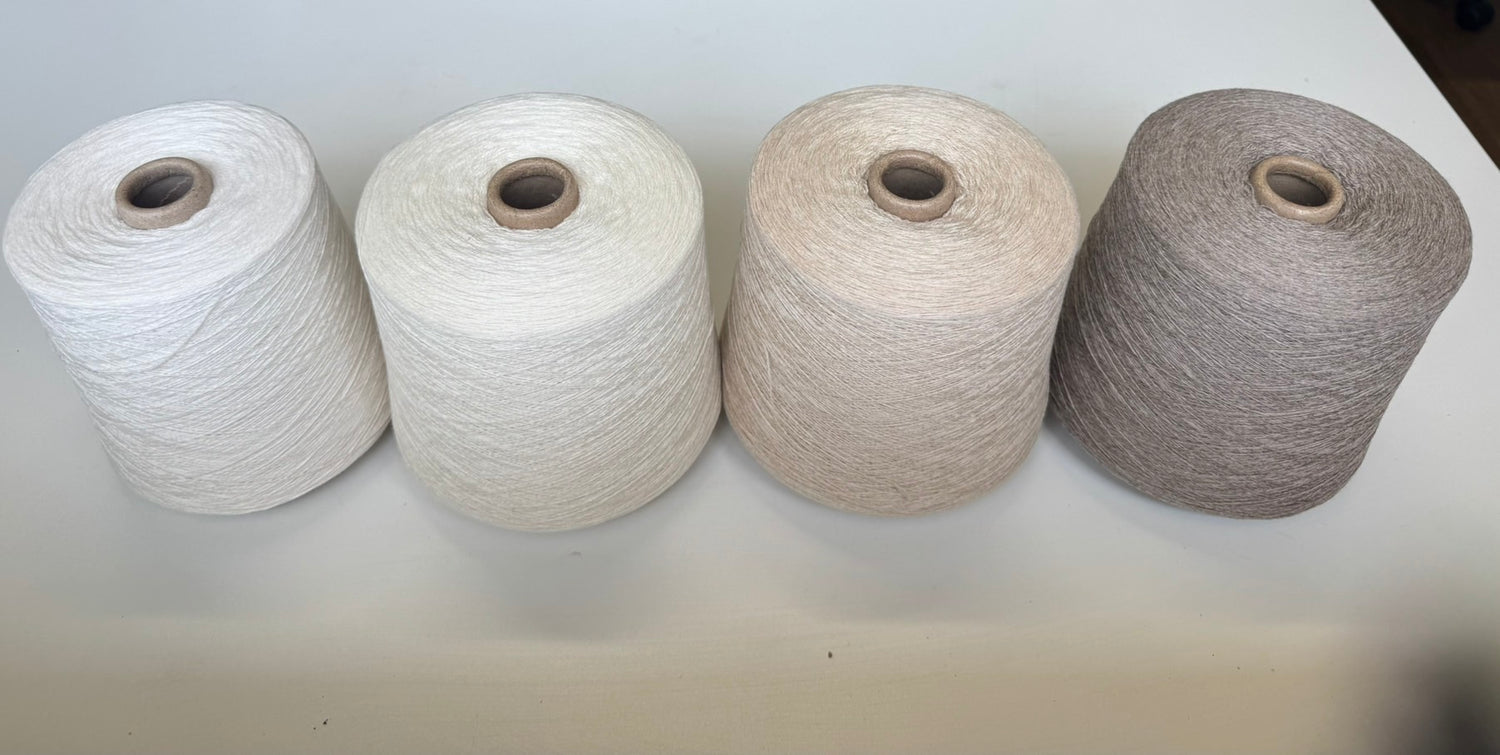 Cadenaは、26番手(26mで1g)、48番手(48mで1g)、60番手(60mで1g)といった細いピュアカシミヤ糸を使用し、「毎日手に取りたくなる“素敵な定番”」を製作できるよう、日々の研究・開発を行っています。